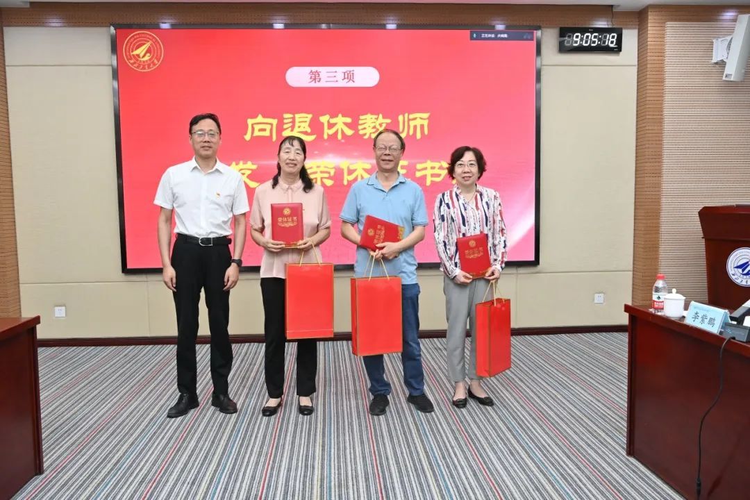 一片丹心育桃李,从教数载绽芳华。第三项,由潘光院长为退休教师颁发《荣休证书》和荣休纪念。感谢他们为学院的建设发展奉献青春和力量,衷心祝愿老师们节日快乐。
