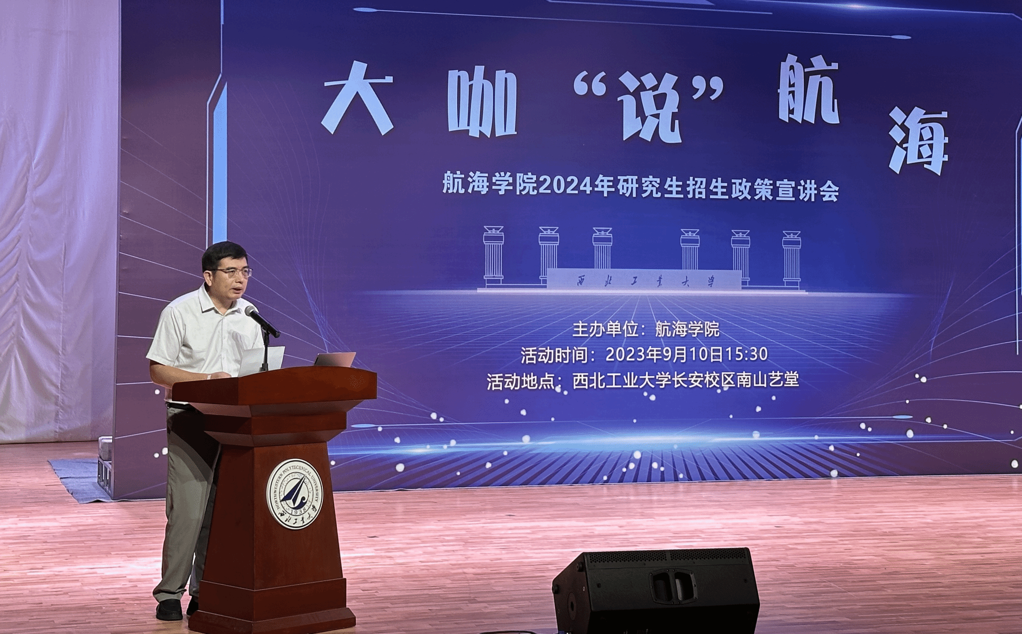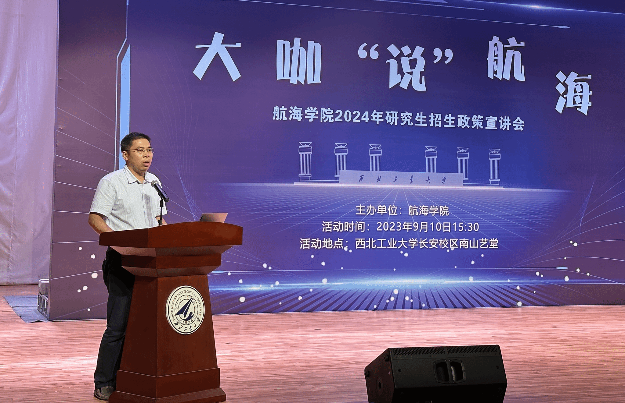 为扎实推进学院研究生招生宣传工作,进一步提升研究生招生质量,9月10日15:30新葡萄8883官网AMG官网在新葡萄8883官网AMG官网南山艺堂举办“大咖说航海”主题活动,全面解读学院两大优势学科和2024年研究生招生政策。本次活动的主讲嘉宾是新葡萄8883官网AMG官网潘光院长和陈克安教授,出席活动的还有新葡萄8883官网AMG官网曾向阳副院长、王银涛副书记、雷波副院长,海洋研究院史文涛副院长,新葡萄8883官网AMG官网机关李娜主任、各教学部副主任与教师代表、学科建设与研究生教学办公室的老师们。本次活动面向校内大四学生开展,300余名学生与近20名教师共聚一堂,聆听大咖“说”航海。活动由曾向阳副院长主持。