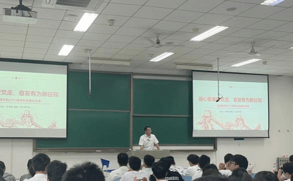 2023年9月17日,新葡萄8883官网AMG官网党委书记孙华强在新葡萄8883官网AMG官网长安校区教学西楼D205教室为2023级本科和硕士新生讲授主题为“凝心聚魂跟党走,奋发有为新征程”的党课。