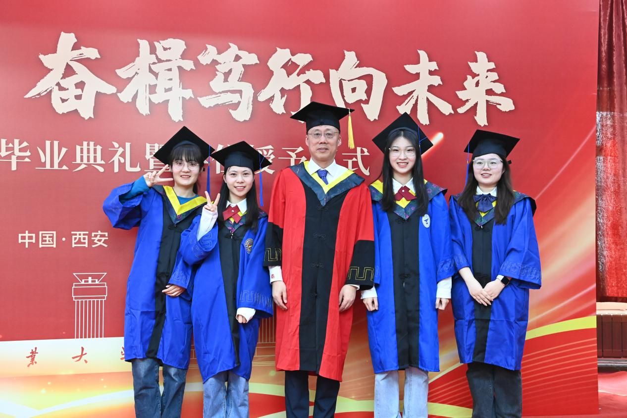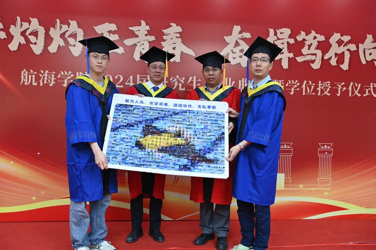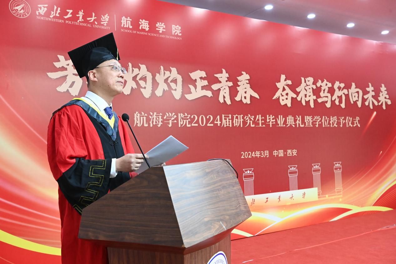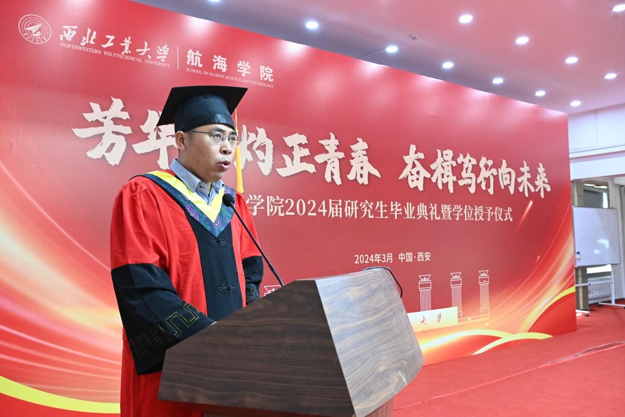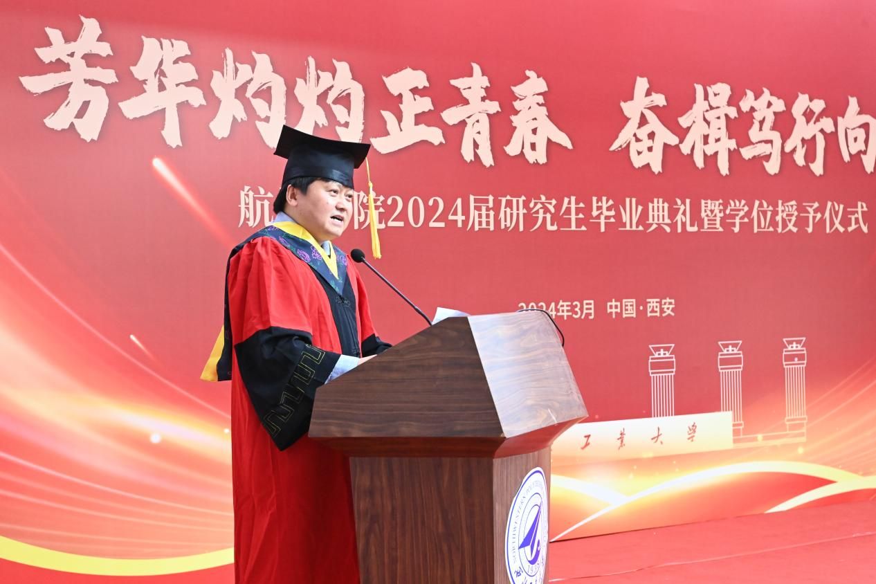 赠礼仪式结束后,潘光院长发表致辞。他回顾了学院的发展历程,肯定了毕业生们在学术、科研和社会实践方面的优秀表现,并鼓励他们在未来的道路上继续发光发热,为社会做出更大的贡献。同时,潘院长寄语毕业生们:一是要坚定“百折不挠志愈坚”的决心,争做“先天下之忧而忧”的有为青年;二是要铸就“千帆竞发探新途”的魄力,勇当“披荆斩棘启新程”的有为青年;三是要锤炼“心怀远志瞰寰宇”的胆识,乐成“海阔天空任驰骋”的有为青年。