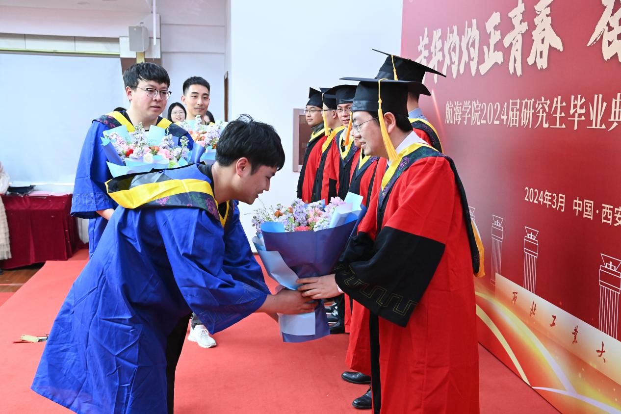 毕业生代表走上舞台,向辛勤耕耘、倾囊相授的导师们献上鲜花,表达对他们的深深敬意和感谢之情。