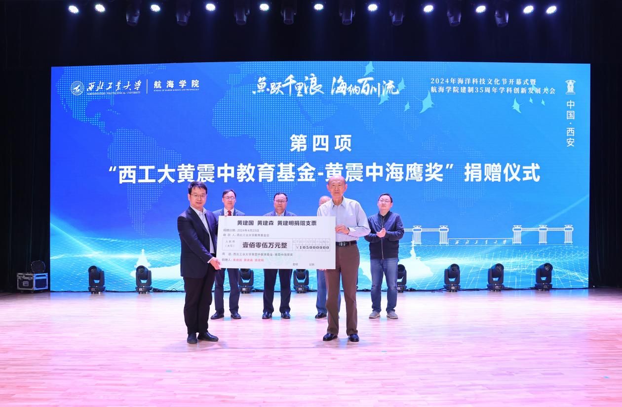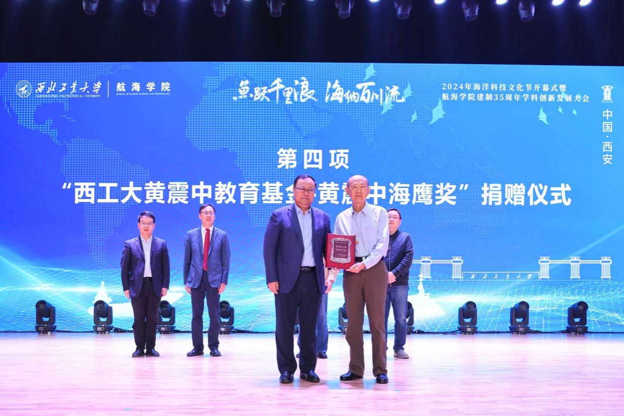 开幕式上举行了“新葡萄8883官网AMG官网黄震中教育基金--黄震中海鹰奖”捐赠仪式。宋保维、潘光、学校对外联络办公室主任杨铭接受捐赠。