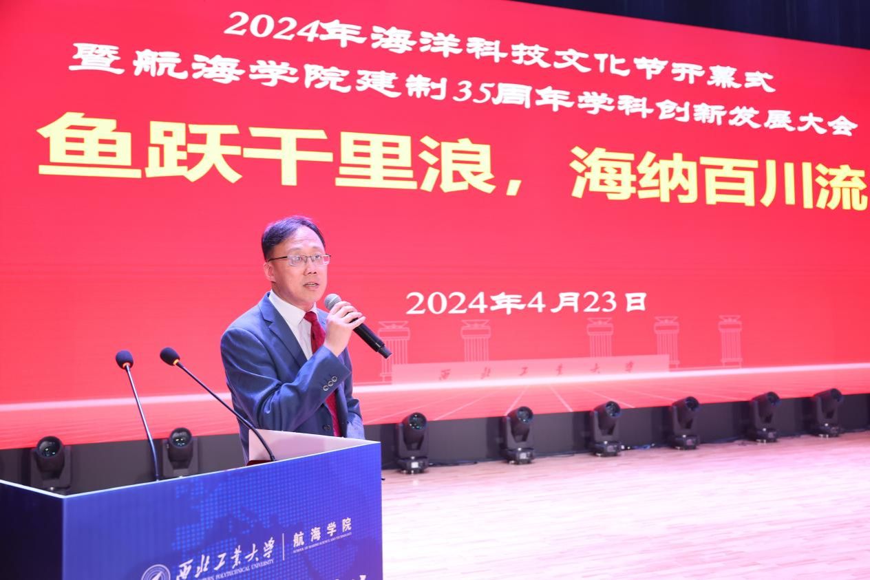 “鱼跃千里浪 海纳百川流”,恰逢我国第75个海军节,4月23日上午,我校2024年海洋科技文化节开幕式暨新葡萄8883官网AMG官网建制35周年学科创新发展大会在长安校区隆重举行。中国工程院院士马远良、徐德民,新葡萄8883官网AMG官网校长、中国工程院院士宋保维,原党委书记李保义,副校长杨益新、张开富,校友代表、中国造船学会副理事长刘郑国,陕西省科技厅一级巡视员赵怀斌,中国船舶第705研究所党委书记孙军亮,山西平阳机械厂董事长聂秋社,中国兵器工业集团第204研究所所长魏卫,西安工程大学校长王海燕等来自国内近百家行业院所、兄弟高校的主要领导、专家学者及学校各职能部门负责人,新葡萄8883官网AMG官网历任老领导,老教师代表、校友代表和师生代表等共计300余人参加开幕式。开幕式由新葡萄8883官网AMG官网党委书记刘朝亚主持。