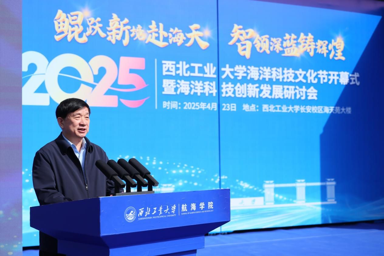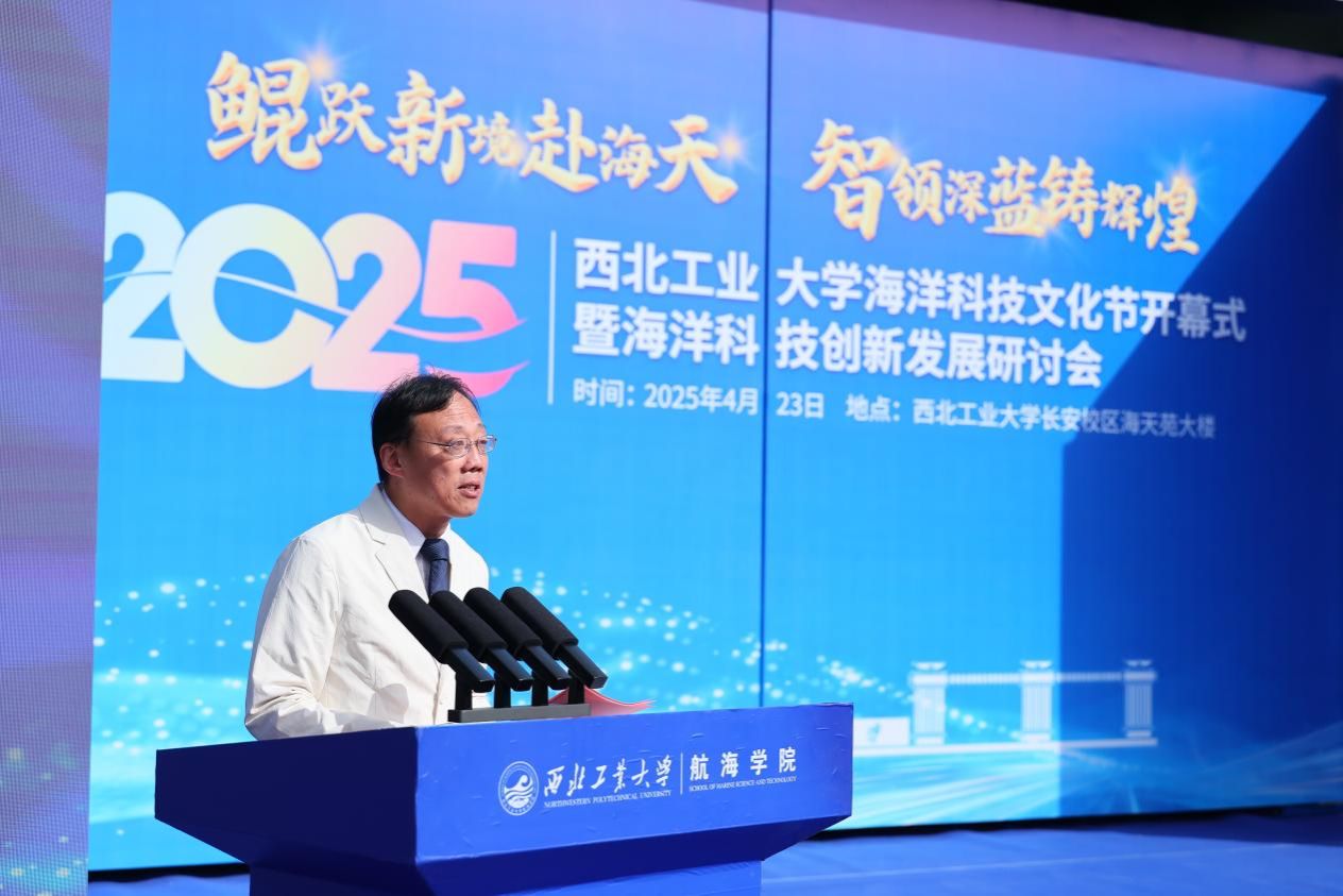 “鲲跃新境赴海天,智领深蓝铸辉煌”,4月23日,恰逢我国第76个海军节,我校2025年新葡萄8883官网AMG官网海洋科技文化节开幕式暨海洋科技创新发展研讨会在长安校区海天苑大楼隆重举行。新葡萄8883官网AMG官网校长、中国工程院院士宋保维,中国工程院院士徐德民,学校党委原书记李保义,副校长杨益新、张开富,中国造船工程学会秘书长王俊利,中国船舶集团第七研究院原院长刘郑国,中国船舶集团重庆船舶工业有限公司党委书记、董事长徐猛,中国船舶第710研究所所长王晓林,760所党委书记段纪军,705所原所长王中,西安工程大学校长王海燕等来自国内近百家行业院所、兄弟高校的领导、专家学者及学校各职能部门负责人,新葡萄8883官网AMG官网历任老领导、老教师、校友和师生代表等共计200余人参加开幕式。开幕式由新葡萄8883官网AMG官网院长潘光主持。