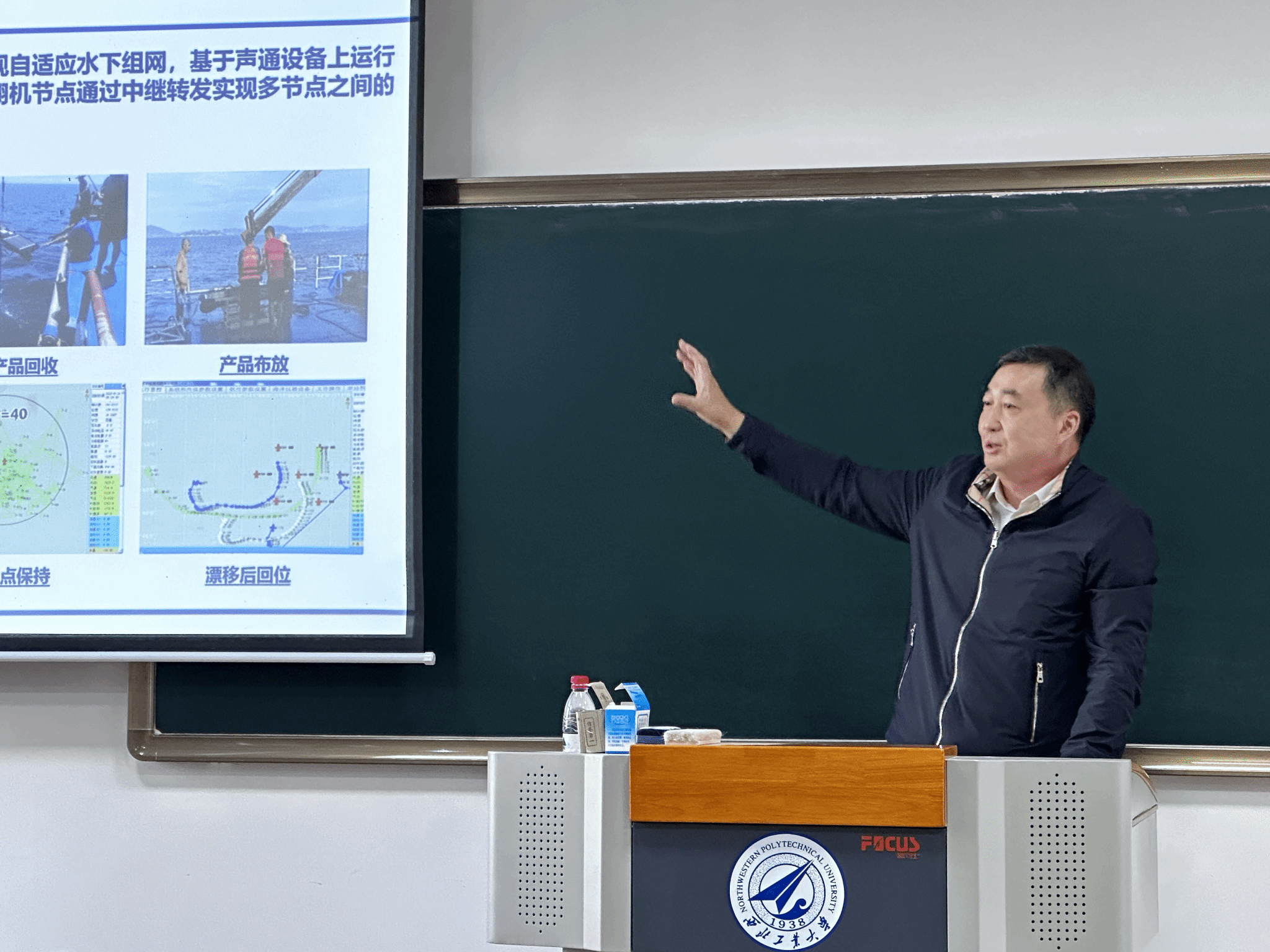 互动环节中,现场师生就报告中提到的海洋装备、无人平台的发展趋势、自身在科研过程中遇到的问题等方面踊跃提问,汪东平绘声绘色地回答了大家的问题,令师生受益匪浅。