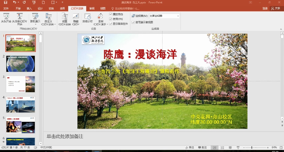 5月19日,由杨坤德副院长邀请的浙江大学教授陈鹰,在线上为新葡萄8883官网AMG官网的师生讲授“海洋工程概论(2020)课程暨海洋科技云端论坛”系列讲座(三)。本次讲座的主题是漫谈海洋——认识海洋、海洋技术、海洋中国,讲座由海洋工程概论主讲教师、新葡萄8883官网AMG官网院长潘光主持,大一本科生、部分研究生和老师共200余人听取了讲座。