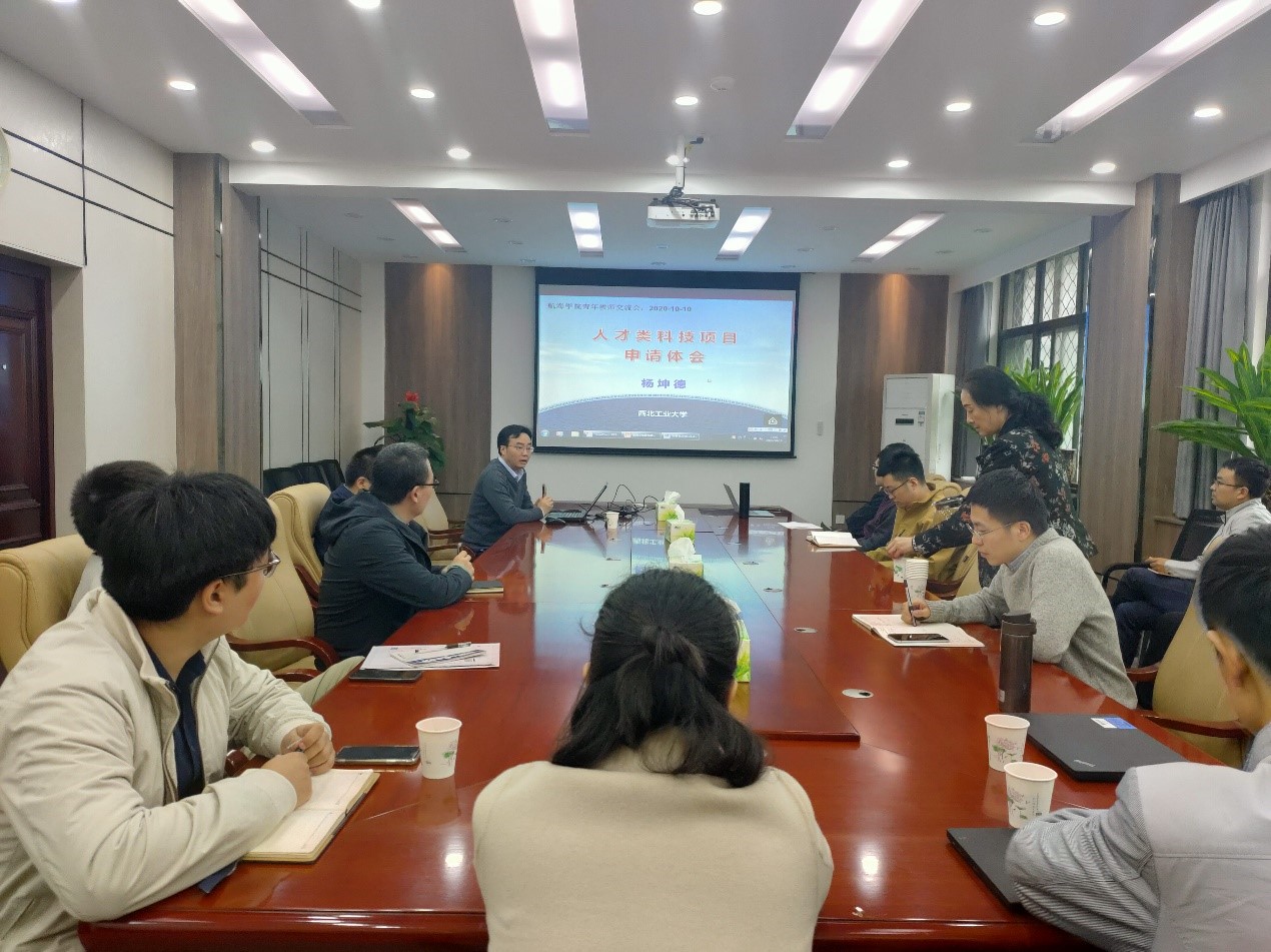 随后的经验分享环节中,杨坤德副院长结合自身申报及多年评审经验介绍人才类科研项目的定位及基本要求,有重点地讲解了人才类项目申报的注意事项,作了人才类科技项目申请经验交流报告。他结合自己的项目申请材料,从申请人和评议人的双重角度,对项目申请书的具体写作进行了细致深入的讲解剖析;建议青年教师撰写申报材料时应措辞严谨、提炼特色、突出优势、凝练创新点、注重前期工作和后期工作的逻辑关系梳理。接着,他还结合自己的项目答辩材料,为青年教师介绍答辩的材料准备的注意事项,并介绍答辩相关经验。