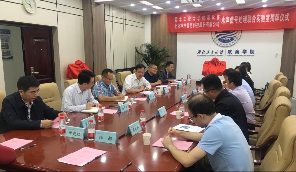 9月24日,新葡萄8883官网AMG官网与神州普惠、武汉普惠共建联合实验室揭牌仪式在学院201会议室隆重举行。北京神州普惠科技股份有限公司总经理张海兵、武汉普惠海洋光电技术有限公司总经理申和平一行,新葡萄8883官网AMG官网院长潘光、党委副书记孙华强(主持工作),副院长杨坤德、崔荣鑫、曾向阳、杨亮及相关教师代表参加了会议,会议由杨坤德副院长主持。