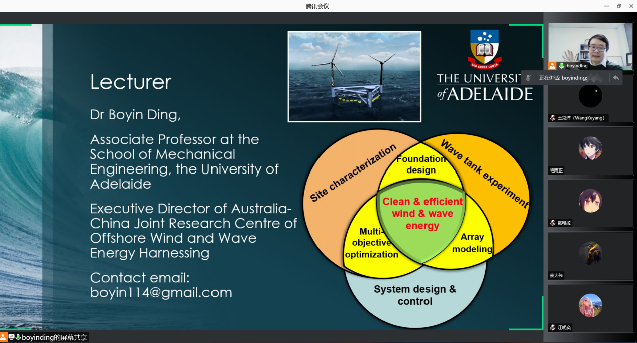 7月6日至8月11日,应新葡萄8883官网AMG官网任树伟老师邀请,阿德莱德大学Boyin Ding副教授于线上开展了波浪能捕获概论课程。