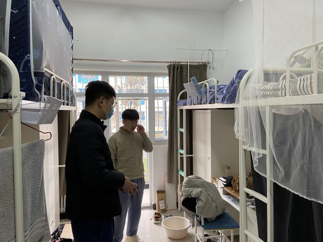 27日中午,院长助理张龙与学生事务主管崔晓来到了长安校区海天苑一号楼,看望刚刚返校的研一同学。张龙与崔晓逐个走访研一同学的宿舍,查看学生宿舍供暖情况,了解大家的旅途情况,并与部分同学沟通交流了有关本学期计划组织的学生活动的情况,针对性地提出了一些新葡萄8883官网AMG官网2020级硕士当前在长安校区面临的一些困难。