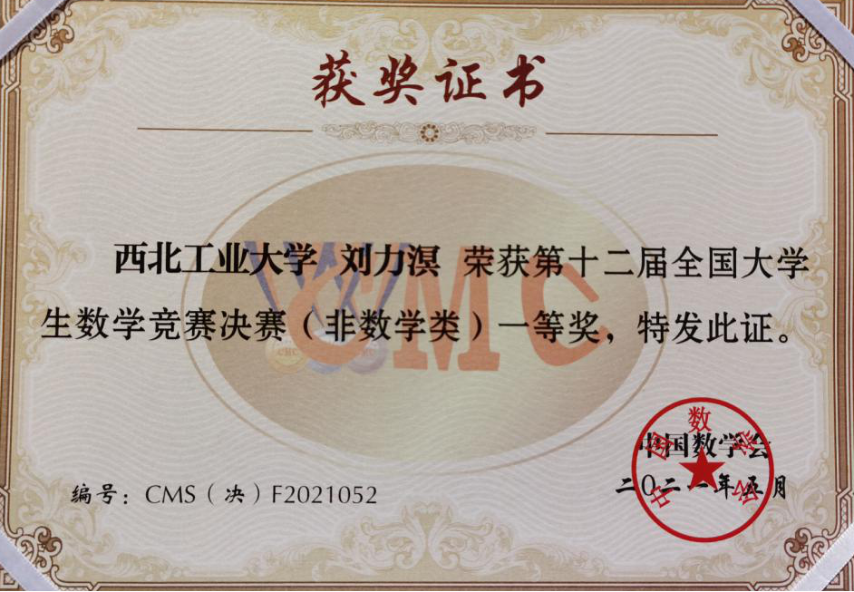 经过智慧的碰撞和激烈的角逐,新葡萄8883官网AMG官网刘力溟同学以优异成绩荣获第十二届全国大学生数学竞赛(非数学类)决赛一等奖,为海院学子参加全国大学生数学竞赛获得的最好成绩,本次比赛新葡萄8883官网AMG官网共获得3项一等奖(非数学类2项,数学类1项)。
