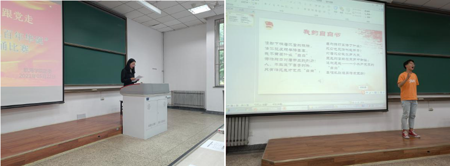 本次比赛由新葡萄8883官网AMG官网团委组织部石明姝主持,大会伊始,主持人宣布本次比赛正式开始,每位参赛选手依次上台展示。参赛选手们感情饱满,庄严端正,声情并茂,每一位同学或朗诵原创作品,或选择红色经典,配合背景音乐及幻灯片的使用充分展示了海院青年学子良好的精神风貌与综合素养,一篇篇红色经典带领大家重温了一幕幕历史画卷。中国共产党已经走过了100年的风风雨雨,在同学们慷慨激昂的演讲中一幕幕传奇在眼前浮现:望北国千里冰封,看钟山风雨仓皇,到湘江中流击水,听金沙水拍云崖。