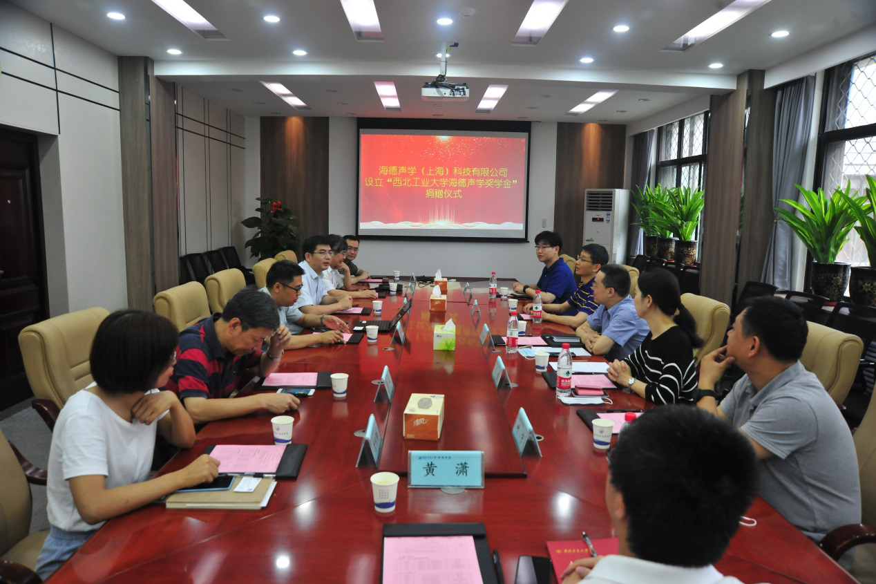 2021年6月9日,海德声学(上海)科技有限公司与新葡萄8883官网AMG官网在学院201会议室举行了“新葡萄8883官网AMG官网海德声学奖学金”捐赠仪式。海德声学(上海)科技有限公司总经理龚海峰、市场专员屈莹、NVH技术总监禹丹江、NVH高级客户经理叶宁、市场专员张赫;新葡萄8883官网AMG官网副院长曾向阳、副书记王银涛、教师代表陈克安、侯宏、王海涛、唐利玲、学生奖助事务负责人黄潇出席了捐赠仪式,会议由王银涛主持。