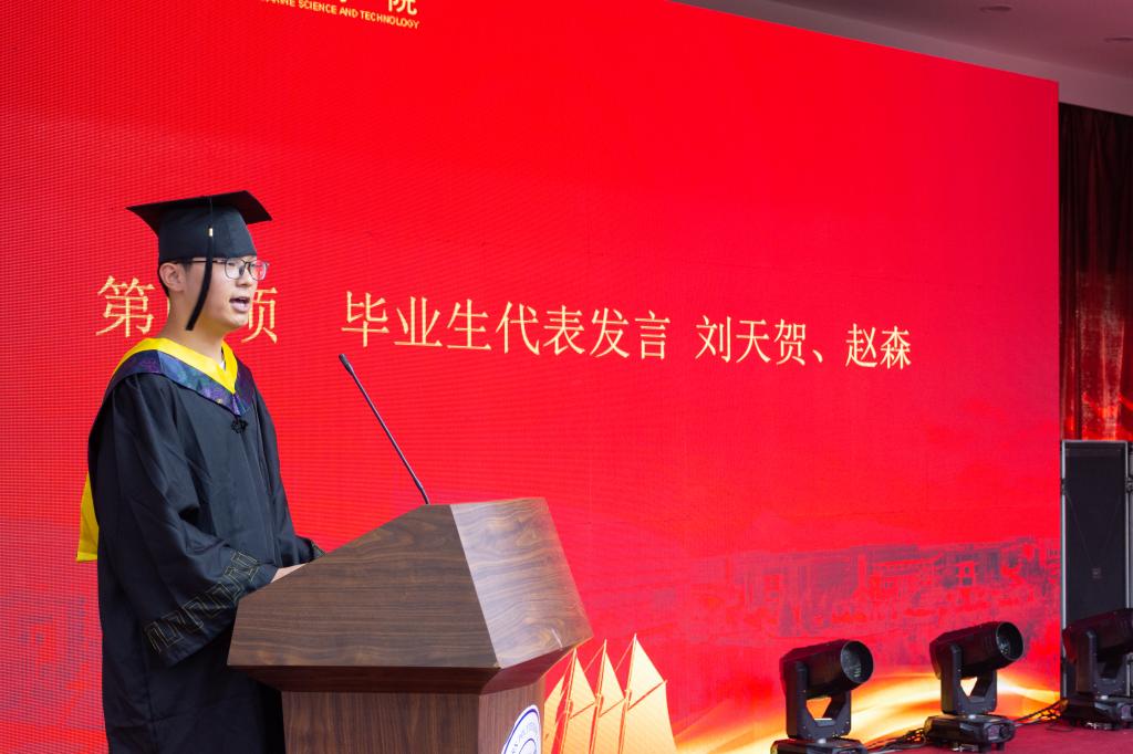 典礼第四项,毕业生代表刘天贺、赵森代表所有毕业生表达了对学院与老师四年辛勤教育的感谢,作为新葡萄8883官网AMG官网的一员,今后将会秉承学院精神,为祖国海洋科技事业做出自己的贡献。