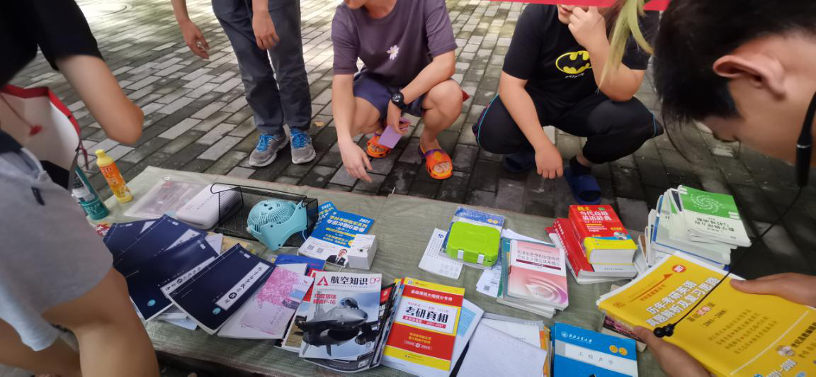 毕业生们在得到号召后,自发地将自己书籍、生活用品拿到3号宿舍楼下,给有需要的学弟学妹们,同学们也认真挑选,并对毕业生同学们表示感谢,此次活动真正做到将“旧物”变成大三学生手中的“礼物”。