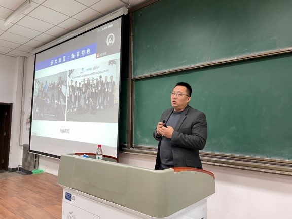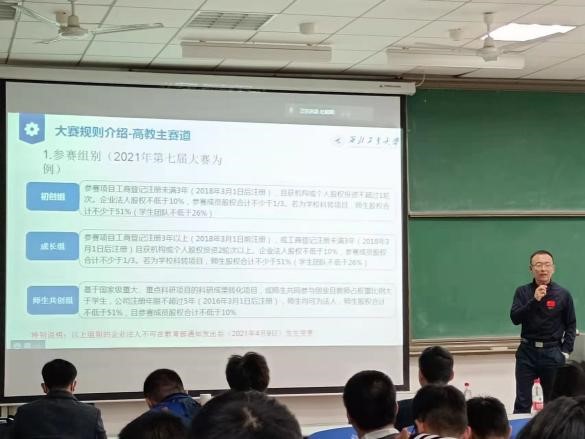 接着,贺华主任做了题为《中国国际“互联网+”大学生创新创业大赛赛道分析与选题》的报告。贺华主任从“互联网+”创新创业大赛历史演变、金奖复盘、赛道分析与选题讲起,向参会师生分享了大赛基本概况、我校参与情况、大赛规则介绍、金奖复盘与选题等四个方面的内容。