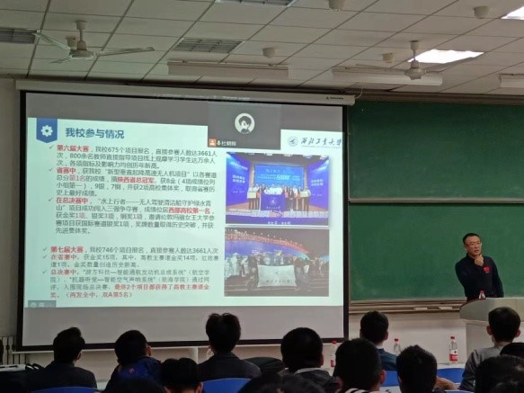 本次报告中,贺华主任将报告主题定为“统一思想,凝聚共识,协同发力,推动创新创业教育工作再上新台阶”,以生动的例子讲述了我校创新创业大赛的历史成就与总体概况,并鼓励学生积极参与其中。他谈到,从我校参与情况与历届参赛数据比较来看,我校呈现出“有高峰,但高原不高”的情况,并结合大赛规则、金奖情况、评分标准、评审要点、评委视角、应注意的误区等内容对学生的发展方向进行分析与指导。