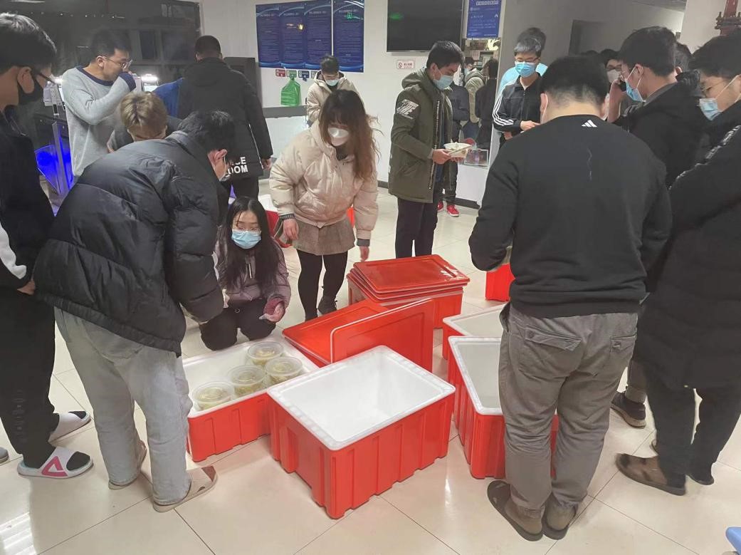 本科生一支部刘昕禹:作为一个考研党,我在考完研的第二天就投身志愿活动。开始时遇到很多困难,例如女生人手紧缺从而连轴转地工作。好在后来团队人数越来越多。发饭过程中,也有不少同学给我送来了咖啡、巧克力等,说一句“谢谢,辛苦了”,顿时我就感觉一天的疲劳都没有了。有个橘子直到现在我都不舍得吃。