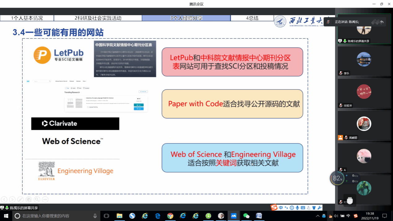 分享者们从论文撰写、科研竞赛、师生关系以及心态调整等各个方面进行了分享,参会者也就自己困惑的地方进行了提问。