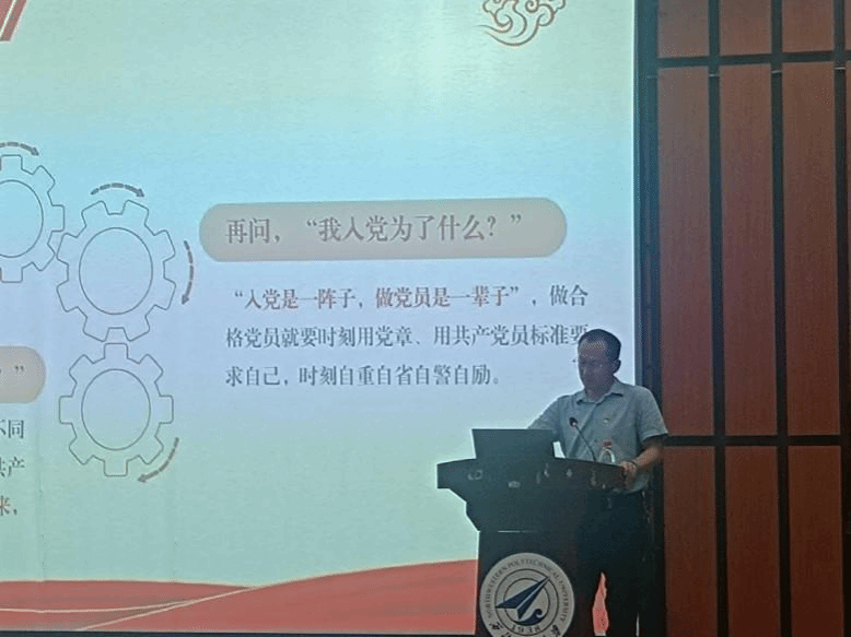 “大家进入大学的第一节党课的主题就是《端正入党动机,争取早日入党》,即将毕业之际,在新的征程中同学们更要做一名合格的共产党员”“入党是一阵子,而做一名合格的党员是一辈子的事情”。在最后一次党课中,孙华强书记从党员的权利与义务出发,提醒同学们要加强党性修养,做初心使命的践行者。要时刻铭记在党旗面前的庄严宣誓,始终做到爱戴党、拥护党。鼓励同学们要坚定信念,勇于担当,不辜负党组织的培养和期望,时刻牢记最初选择的那份理想和信念。无论遇到什么困难和挑战,都要坚守初心,不忘初衷,不迷失方向。只有树立正确的人生目标,并为之努力奋斗,才能实现自己的人生价值。