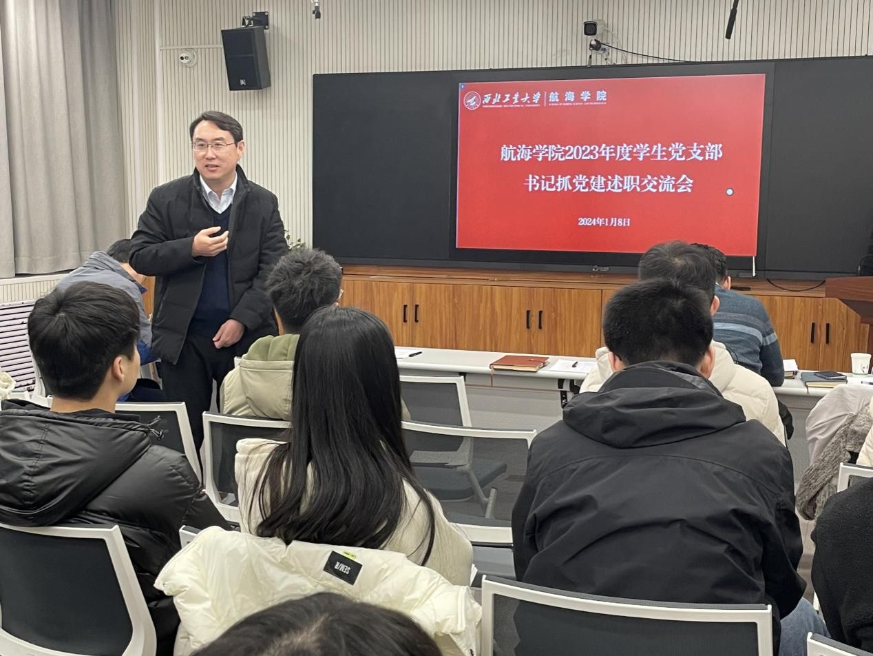 刘朝亚对各学生党支部书记述职情况进行了点评与指导。他针对2024年学生支部工作提出几点建议:一是要强化政治引领,注重落实,提高工作质效,完成好规范性规律性工作任务;二是坚持党建引领,发挥先锋模范作用,既要仰望星空还要脚踏实地,落实好具体的每一项工作;三是创新工作方法,丰富支部活动内容,增强支部凝聚力;四是善于把“小事”办成“大事”,培养大局意识和集体荣誉感,将青春之志融入国家民族发展。