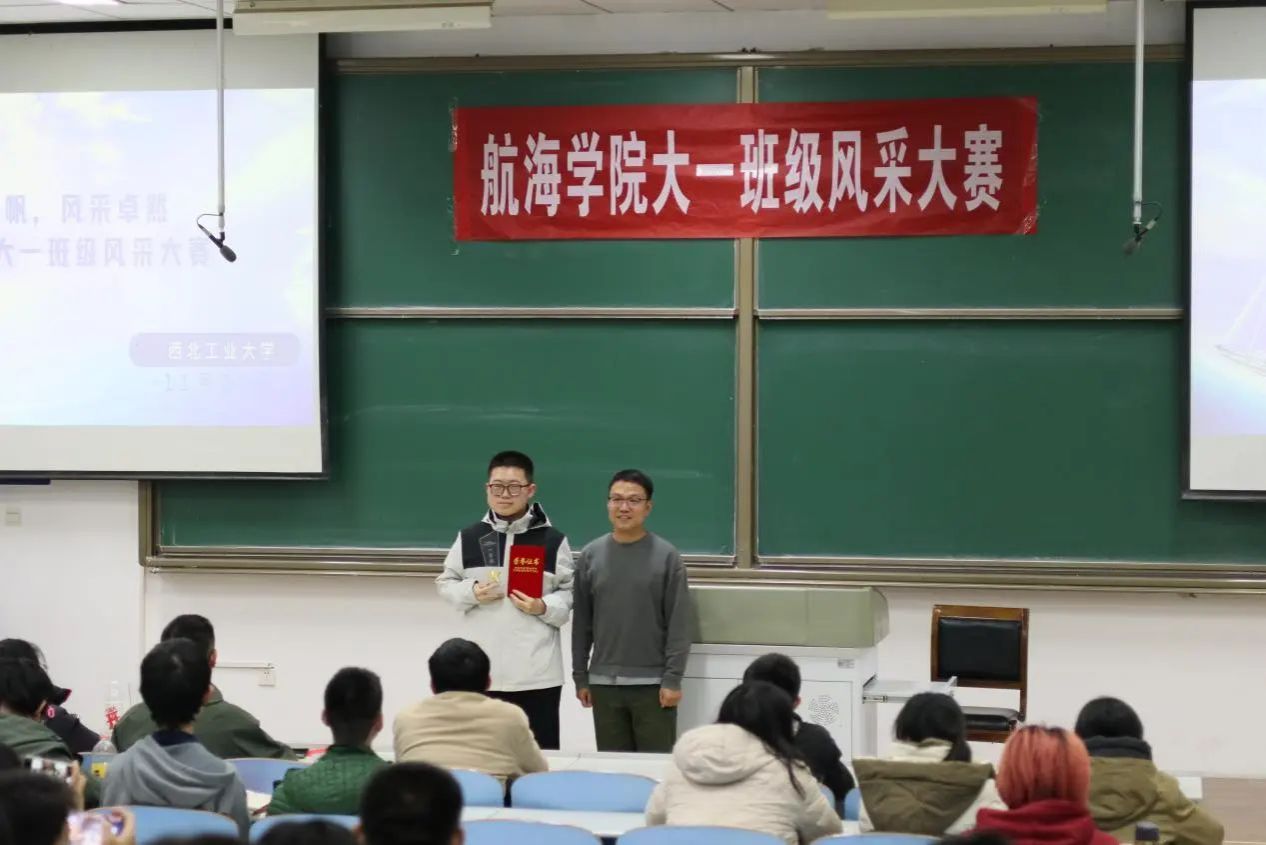 所有班级展示完毕后,胡浩老师对本次比赛进行点评,指出各班的优点和不足之处,同时对大一班级建设提出了建议。他提到,班级是一个紧密合作的集体,同学们要在集体中互帮互助、共同成长,各班也要继续做好班级建设,使同学们在紧张的学习生活之余,获得大学生活的归属感。