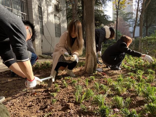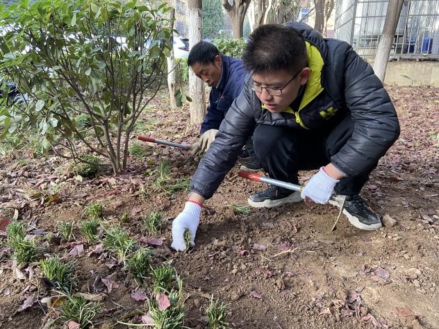 麦冬草根系发达,耐旱,适应性强,是园林绿化地被植物的首选品种,可做地被植物使用,可在河坡、路边、树穴、石缝、墙角、花坛边缘、绿篱脚下等处正常生长。首先在相关技术人员的指导下,志愿者们学习了相关麦冬草的种植要领,保证种植深度在5-10cm,种植间隔在10-15cm。经过专业人士的演示,同学们跃跃欲试。在几次尝试后就能熟练地掌握种植要领,经过辛勤劳作,同学们留下了滴滴汗水,也浇灌了亲手种植的麦冬草园地。大家在实践中培养了热爱劳动与劳动人民的情感,更深入体会了劳动的伟大意义。