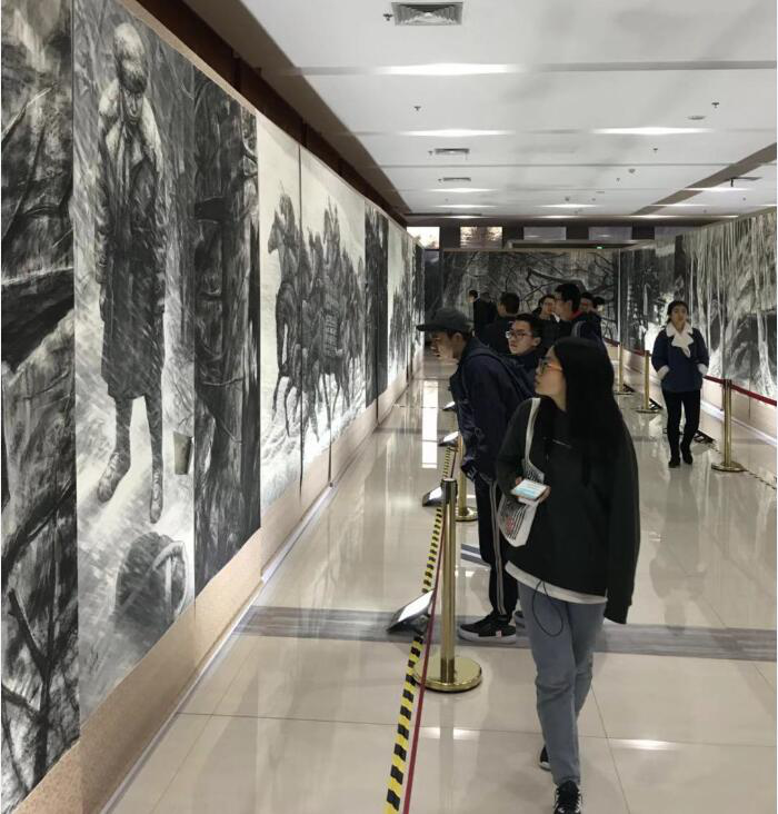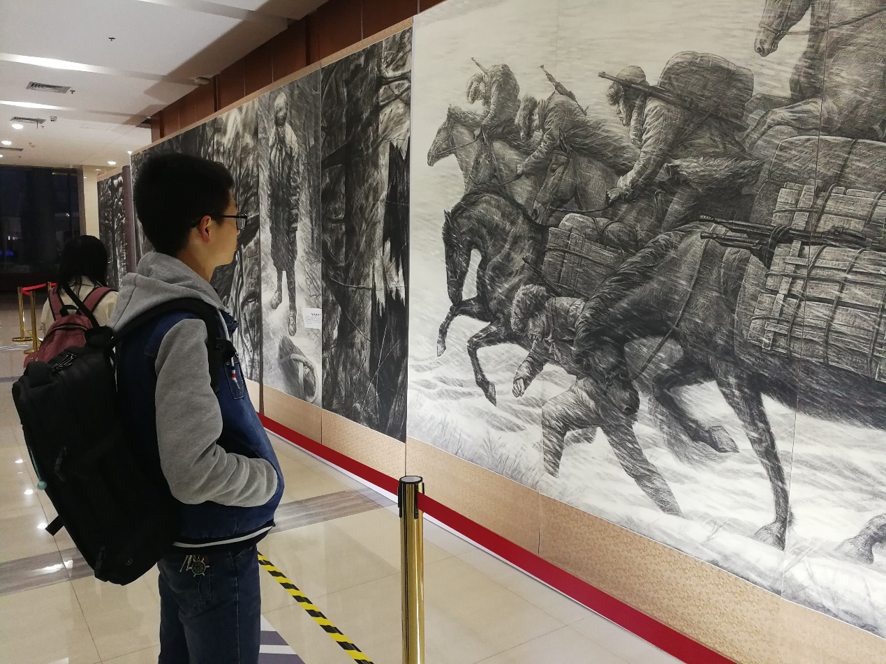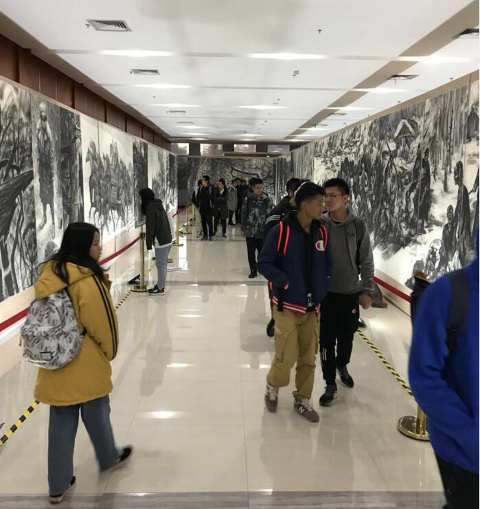 纵使风餐露宿,眠冰卧雪,纵使缺衣少食,给养匮乏,抗联英烈依旧艰苦奋斗着,拼尽全力与敌人周旋。他们英勇无畏,百折不挠,用血肉之躯书写了一段可歌可泣的抗战历史。为了解抗联历史,学习先烈不惧艰险、甘于奉献的优秀品质,11月13日下午18:00,在新葡萄8883官网AMG官网院长助理张龙老师、马克思主义学院陈诚平老师和海洋工程类2019级辅导员王士刚老师的带领下,新葡萄8883官网AMG官网初级党校培训班全体同学前往启真楼一楼参观“抗联之魂”主题全景素描展览。