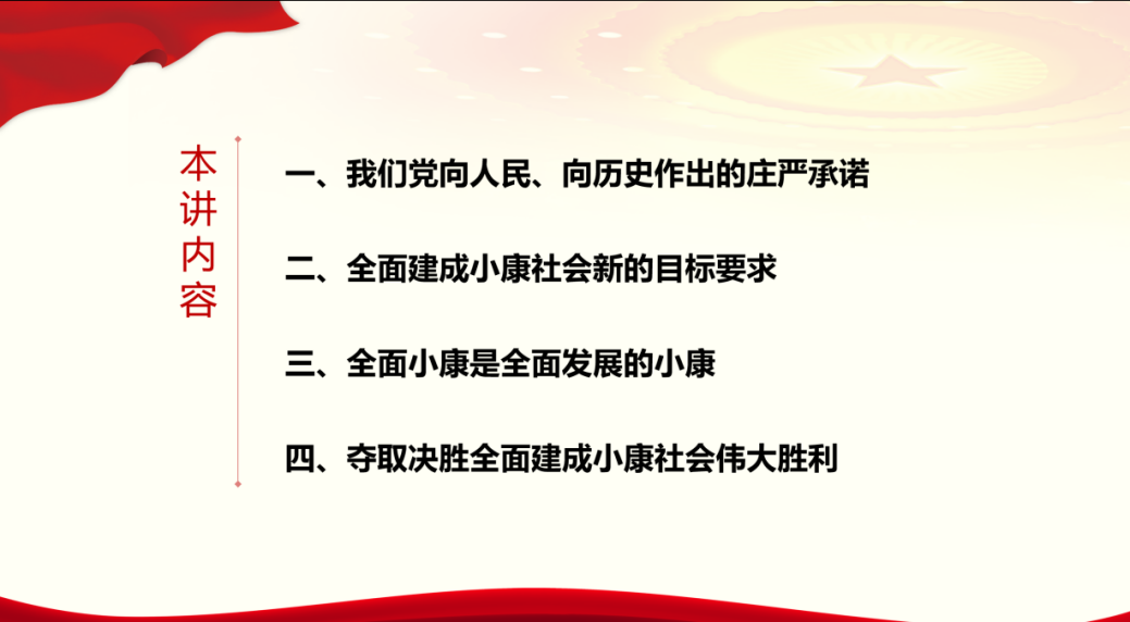段老师首先引出“全面建成小康社会”的概念,接着从全面建成小康社会的重大意义、重大进展、短板弱项等多个方面对其进行讲解。随后段老师讲解了全面建成小康社会新的目标要求,即经济实现高质量发展、创新驱动成效显著、发展协调性明显增强。段老师强调,全面建成小康社会已经到了一鼓作气、决战决胜的历史节点。作为当代青年,应该有着“筚路蓝缕,以启山林”的精神,与十四亿中华儿女一起,完成这一战略任务,这是我们的历史责任,也是我们的最大光荣。与会积极分子通过此次党课学习,深入了解了全面建成小康社会这一概念,纷纷表示要努力提高个人党性修养,争取早日加入中国共产党,为决胜全面建成小康社会贡献更大力量。
