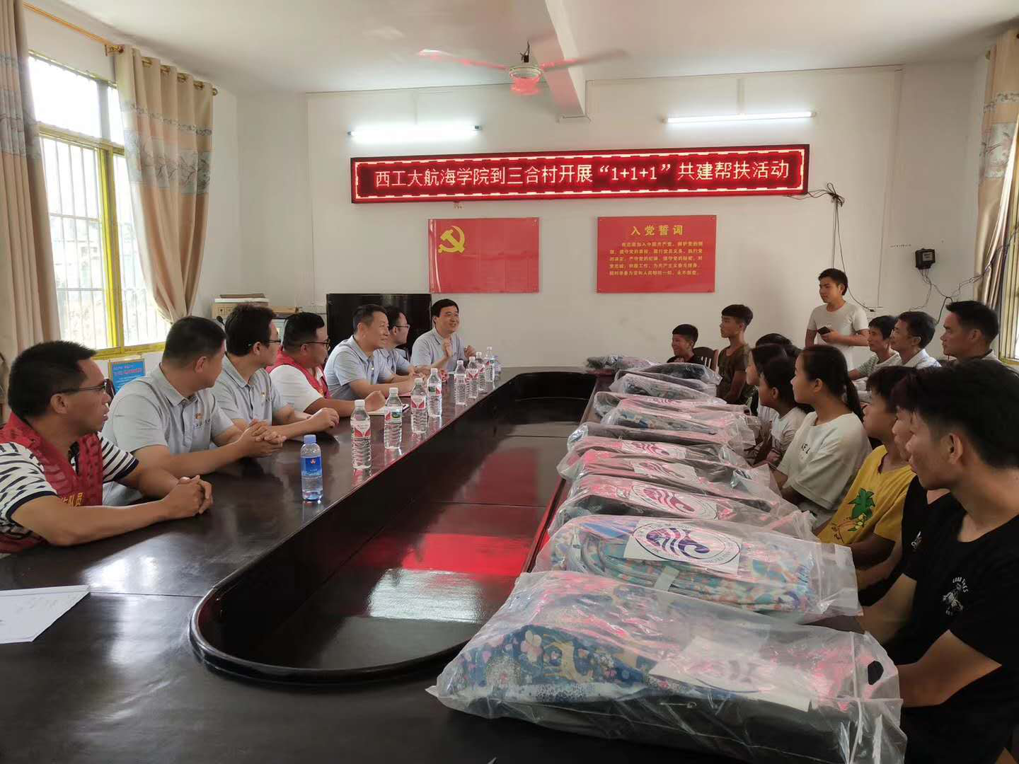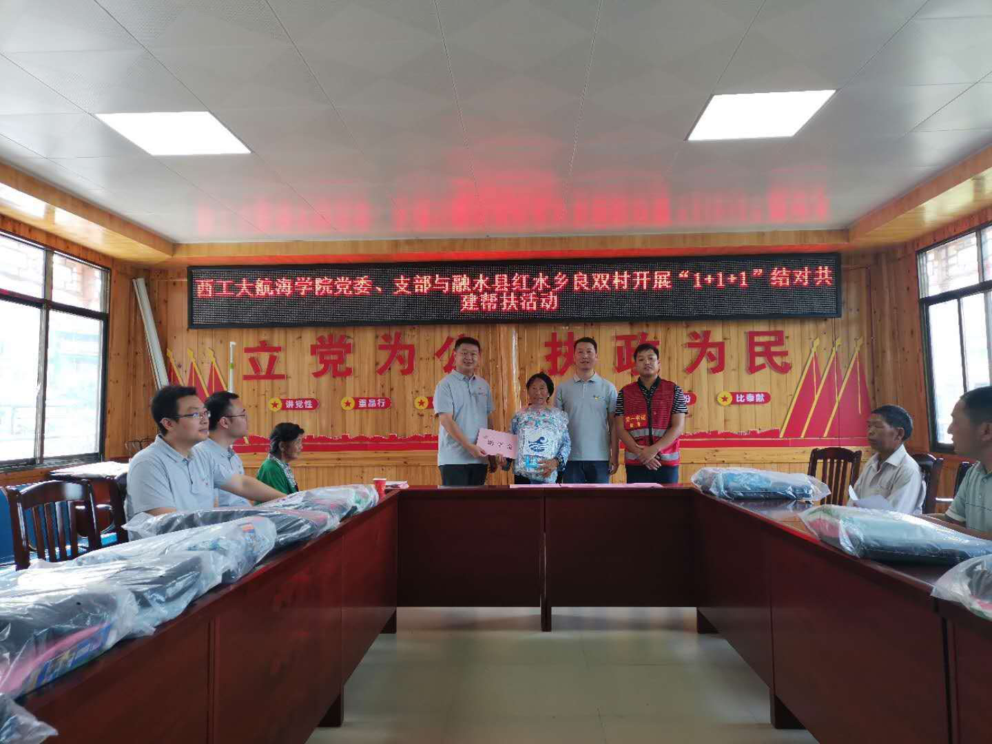 9月2日至5日,新葡萄8883官网AMG官网党委派出教工党支部书记、学生党员代表博士研究生、学院组织员一行6人,代表全院151名教工党员和37名参与“1+1+1”党员结对帮扶工作的学生党员,赴广西融水县红水乡良双村和安太乡三合村开展党建促扶贫支部共建活动,进一步落实师生党员与两村贫困生“1+1+1”党员结对帮扶计划,激发其内生动力,实现扶智扶志,助力两村1380户乡亲如期完成脱贫摘帽任务。