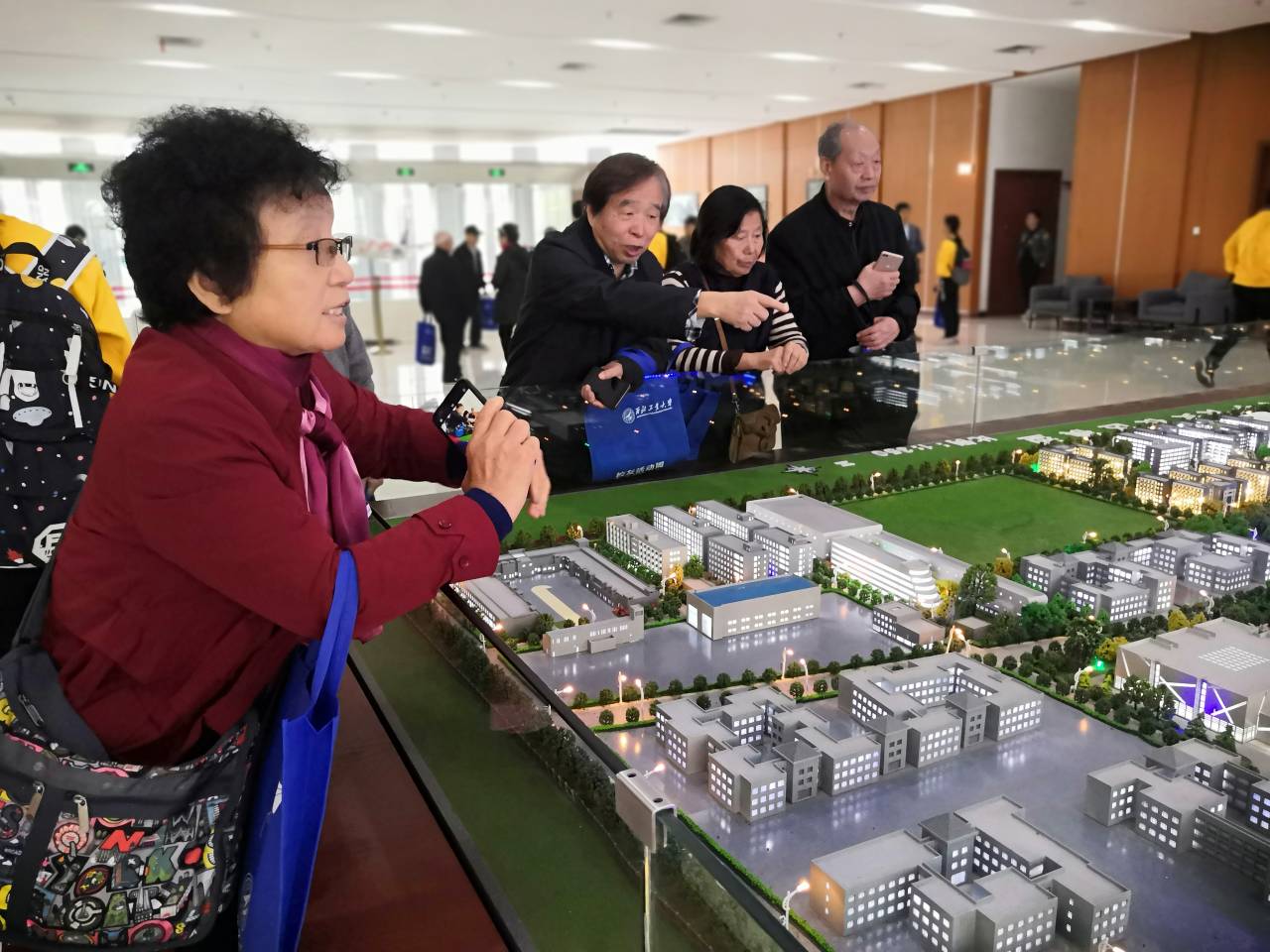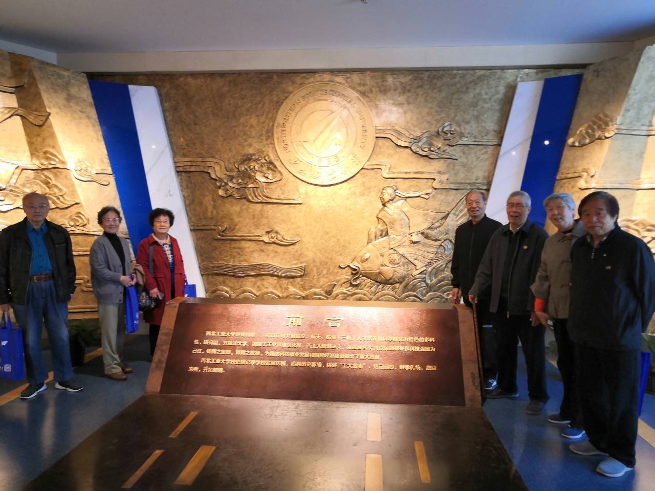 中午十一时,校友们参观了校史馆。看到长安校区模型,校友们不禁感叹母校日新月异的发展。之后校友们一行人来到了校史馆,沿着历史行进的轨迹,仿佛置身于历史列车中重游,令人心潮澎湃,古路灯火,砥砺前行,公诚勇毅,继往开来,他们跟随着志愿者领略了我校坎坷而丰富的建校史,并对馆内保存完好的遗迹感到十分新奇。