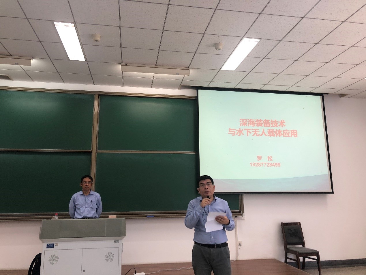 2022年5月6日下午14:00,在长安校区教西D201和教西D202教室迎来“感悟深蓝”课程第二轮的第三讲,由我院杰出校友、中船集团七五〇试验场副总工程师、技术总监罗松研究员主讲,主题为《深海装备技术与水下无人载体应用》。海洋工程类及其他学院共330余名一年级学生到课,新葡萄8883官网AMG官网副院长曾向阳全程听课,并在课前详细介绍了罗松研究员的事迹。