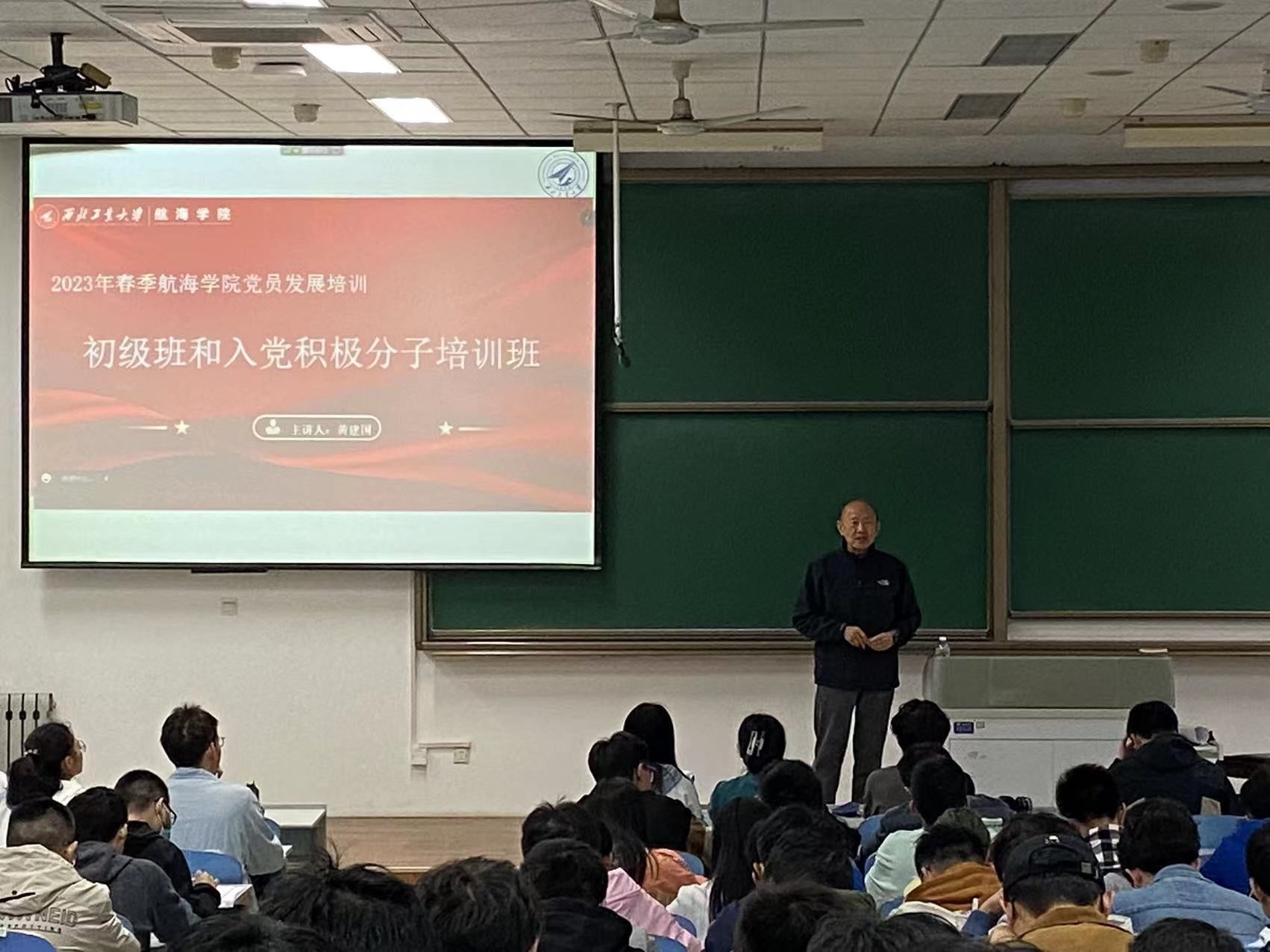 下午14:00,在长安校区教西D201教室,黄建国以“祖国的期望,青年的责任——争取做一名合格且优秀的共产党员”为主题讲授了本次党课。他从“为什么要加入中国共产党”、“身边的优秀共产党员”、“了解新葡萄8883官网AMG官网,热爱航海专业”和“对青年的寄语和期望”四个方面展开,帮助学员们了解党员的责任与义务,树立正确的入党动机,鼓励学员们要继承前辈艰苦奋斗的航海精神。最后,他希望同学们能珍惜青春好时光,不负国家和父母厚望,立大志、成大才。