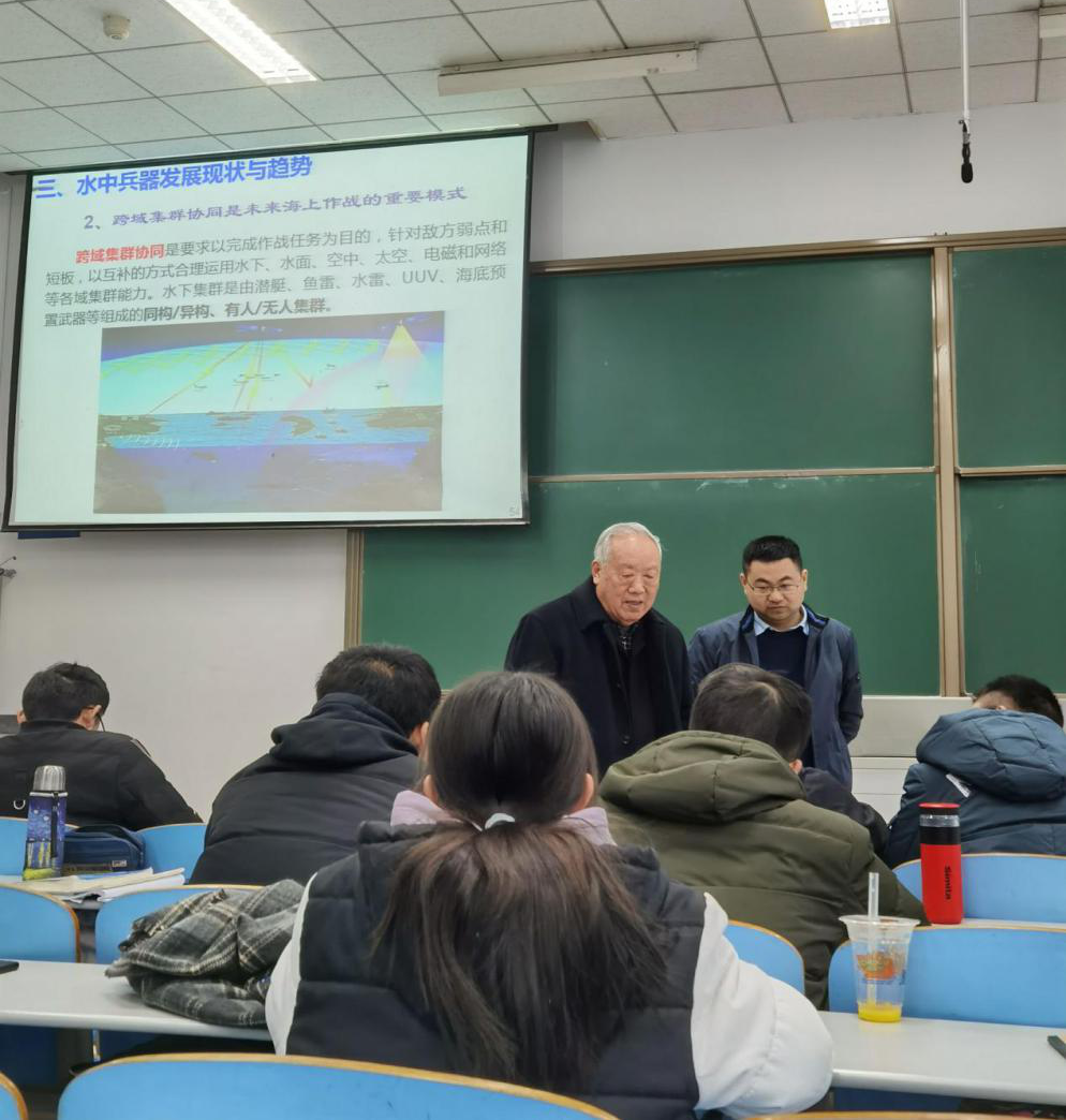 12月10日在长安校区教西D101教室,“海洋工程”大类新生研讨课《走向深蓝》系列课程由徐德民院士带来第十二讲《现代水中兵器》。徐院士从海洋强国战略、水中兵器概述、水中兵器发展现状与趋势、水中兵器涉及的科学技术问题、新葡萄8883官网AMG官网对水中兵器发展的贡献五方面全面介绍了现代水中兵器状况,为海院学子们带来一场学术盛筵。