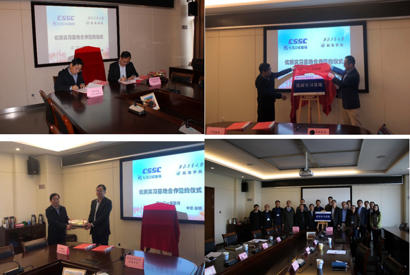 2021年4月7日,为进一步发挥高校和企业各自特色和优势,促进校企联合育人,推动小班化实习以提升实效,培养学生家国情怀和蓝色情怀,新葡萄8883官网AMG官网院长潘光带队赴昆明先后与中国船舶集团705所昆明分部、中国船舶集团750试验场和昆明船舶设备集团有限公司三家行业内单位举行实习基地签约授牌仪式。