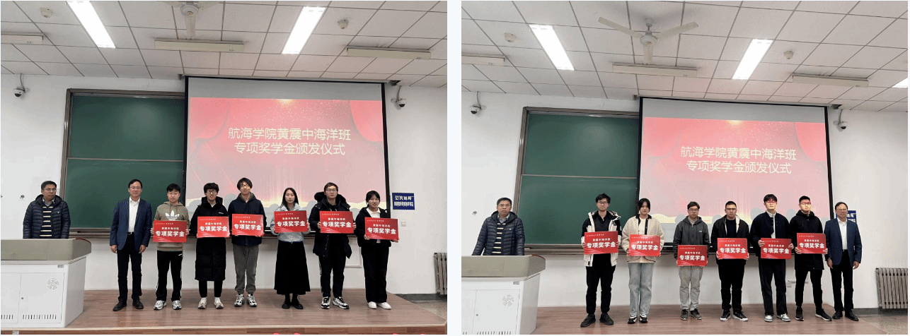 班主任杨占龙、谢磊老师表示,黄震中海洋班专项奖学金的设立给予了学生们极大的激励,航海学子要努力奋斗、再接再厉,把奖学金作为鞭策自己前进的动力。今后要更加注重专业基础知识学习,以总师校友为榜样,以更加优异的成绩回报学校,回报社会。
