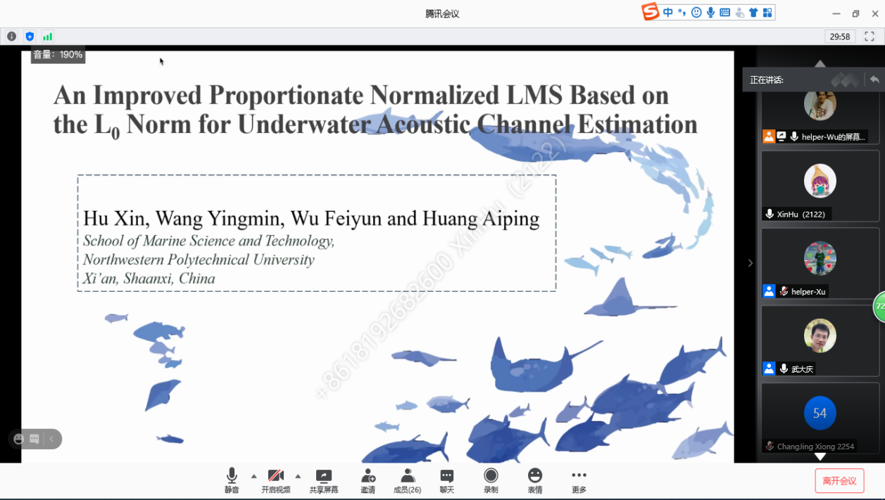 2020年,新葡萄8883官网AMG官网克服国际疫情的严重影响,积极推动线上国际交流工作开展。在研究生赴国(境)外交流学习专项资金资助下,共组织36名学生参加了IEEE海洋学会议、IEEE进化计算会议、国际噪声控制工程大会、IEEE国际信号处理、通信和计算会议等高水平国际学术会议并做口头学术报告,充分展示海院学子扎实的科研能力、开阔的国际视野与关注学术前沿问题和国际最新研究成果的科研意识。