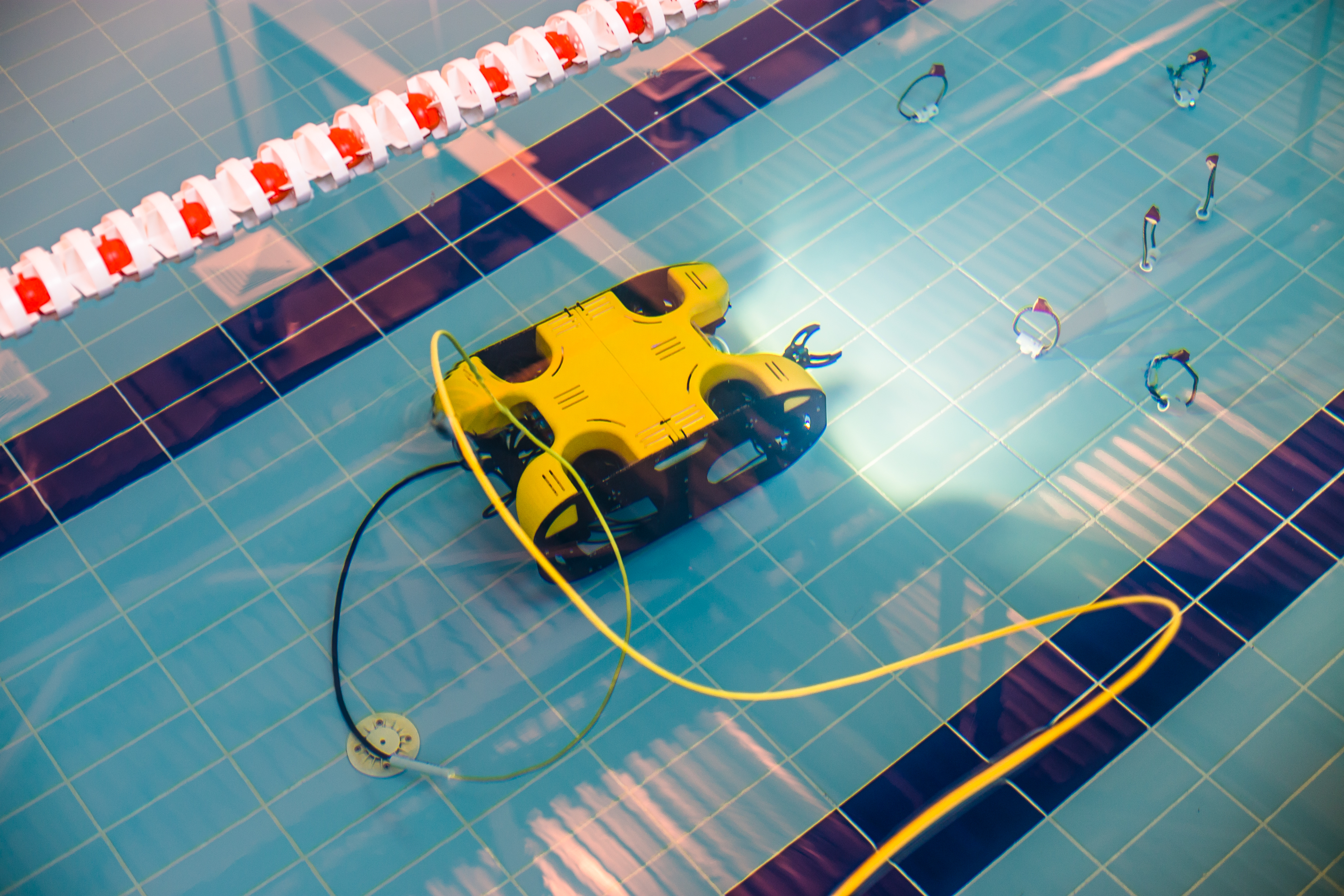 本届大赛的主题为“开拓北极”,参赛队伍需要控制水下机器人完成多项任务,包括连接管道、打开管道阀门和收集水下废弃物。每队有两次机会完成比赛任务,限时15分钟。比赛最大限度地模拟了实际条件:机器人只能通过管道口入水,而控制员背向泳池而坐,只能通过显示屏图像摸索操作。