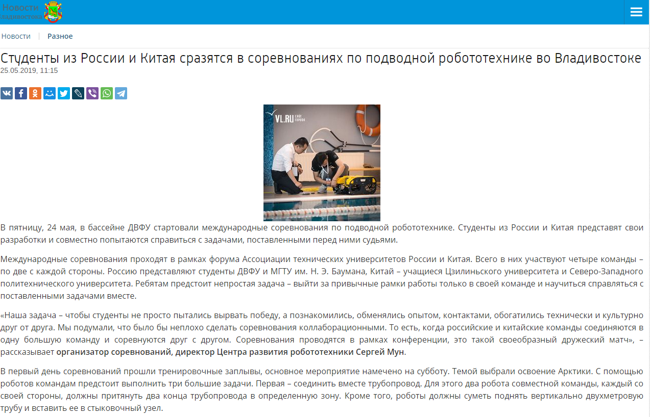 本次比赛受到了俄罗斯符拉迪沃斯托克市政府、莫斯科鲍曼国立技术大学等单位的跟踪报道,我校师生代表队荣登报道主页。