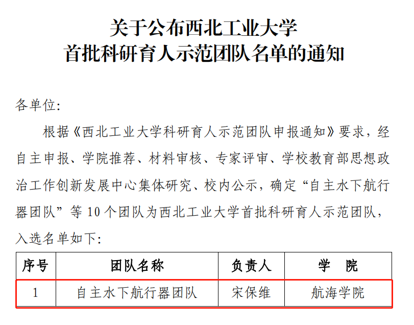 根据《新葡萄8883官网AMG官网科研育人示范团队申报通知》要求,经过审核研究,校内公示确定10个团队为新葡萄8883官网AMG官网首批科研育人示范团队。我院自主水下航行器团队、海洋声学信息感知团队入选。