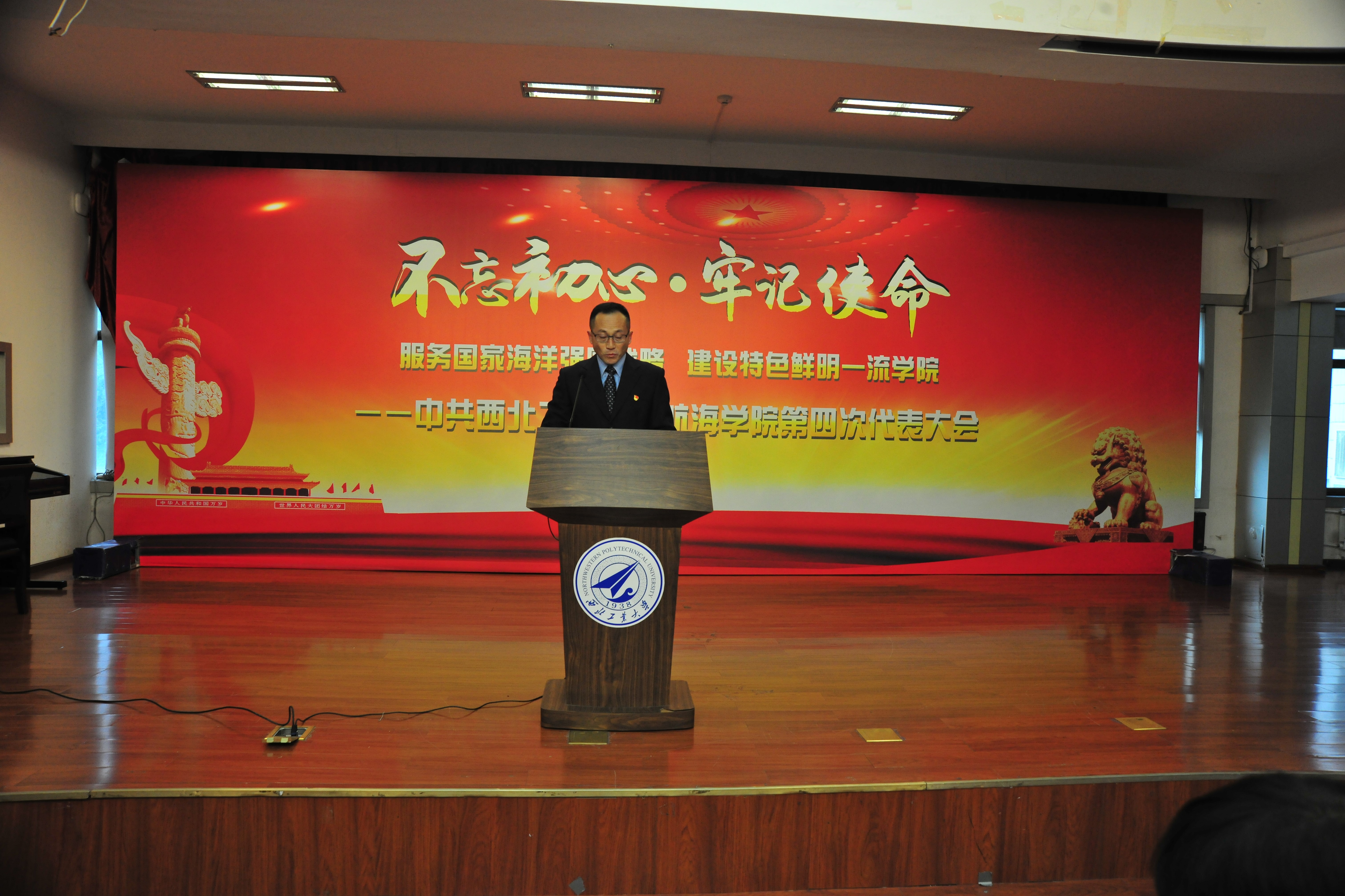 大会在雄浑嘹亮的国歌声中拉开序幕。首先,学院党委副书记(主持工作)孙华强代表中国共产党新葡萄8883官网AMG官网第三届委员会,作了题为《不忘初心、牢记使命,服务国家海洋强国战略,建设特色鲜明一流学院》的报告,对学院四年来的工作进行了总结和回顾,分析了学院面临的机遇和挑战,展望了未来五年学院下一届党委的工作设想和任务。报告指出,新时代赋予新使命,新发展带来新机遇,新要求提出新任务。我们必须登高望远,忠诚担当,戮力同心,勇往直前,把机遇转化为加快学院事业发展的新优势,把挑战转化为学院向奋斗目标迈进的新动力,主动对标看齐,争创一流,不断提升学院办学水平和核心竞争力,践行为党育人、为国育才的初心使命,落实立德树人根本任务,抢抓机遇,乘势而上,主动作为,在建设海洋强国的历史使命中贡献学院力量!